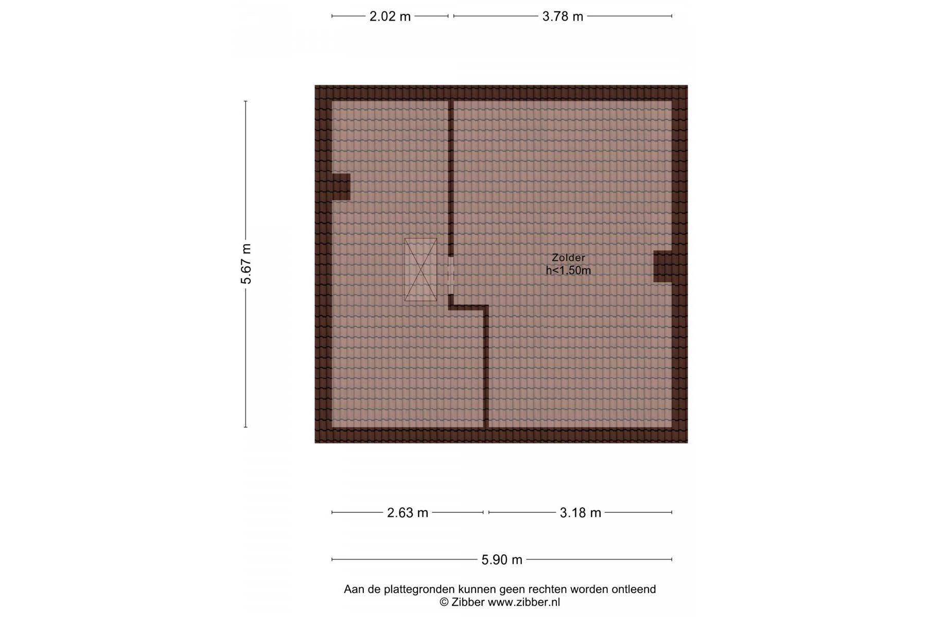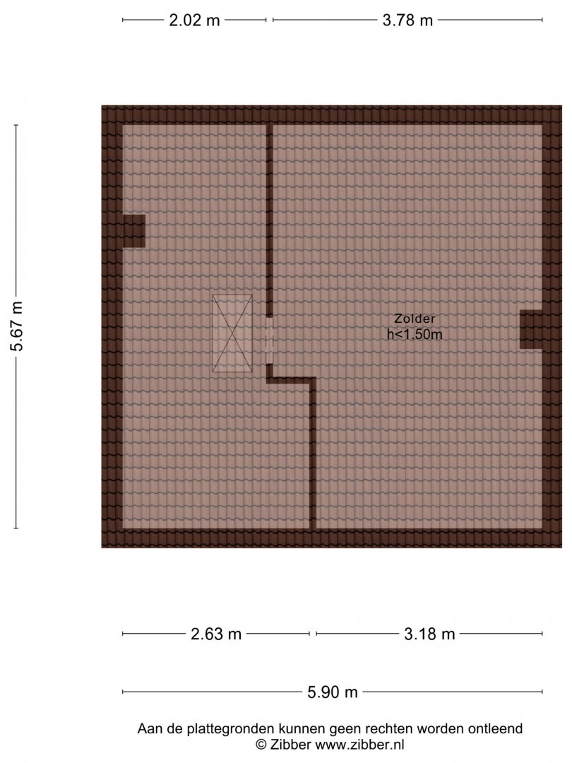 Tweede verdieping: via vlizo trap te bereiken deels begaanbare zolderruimte.