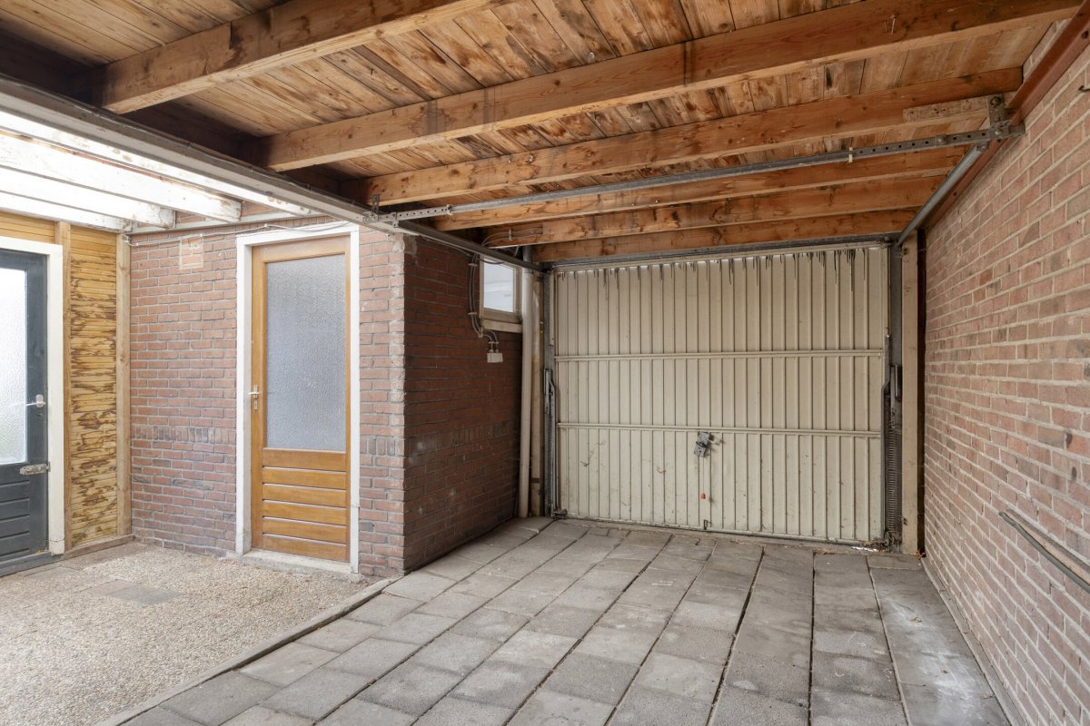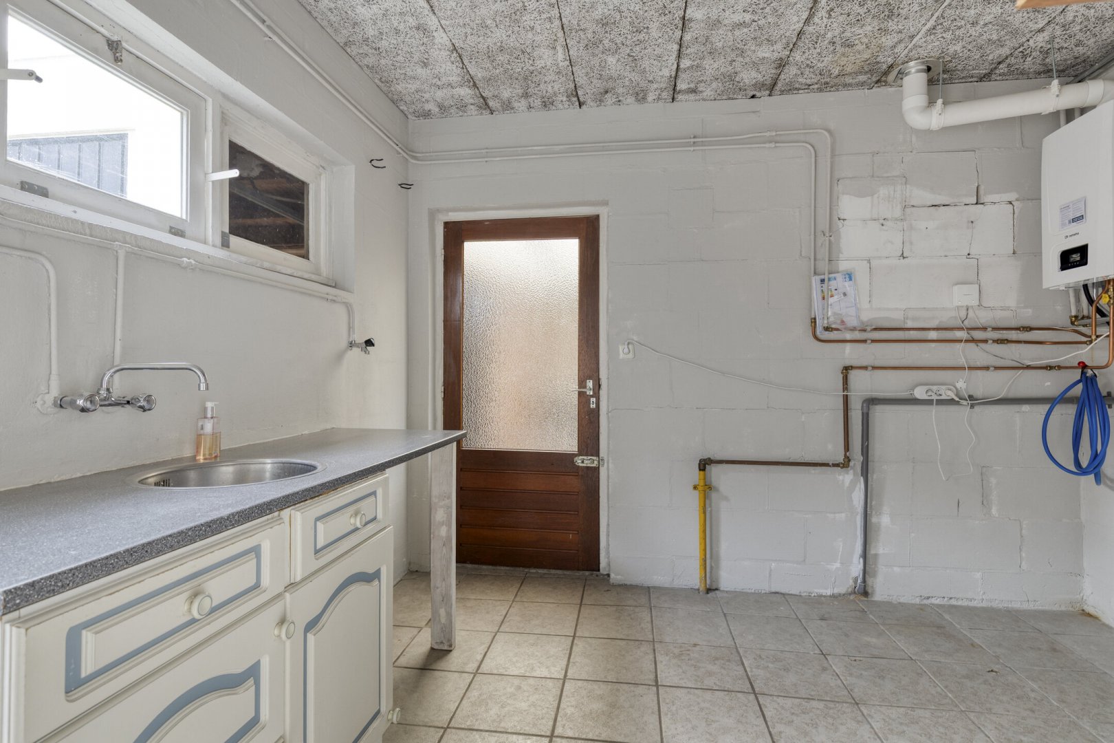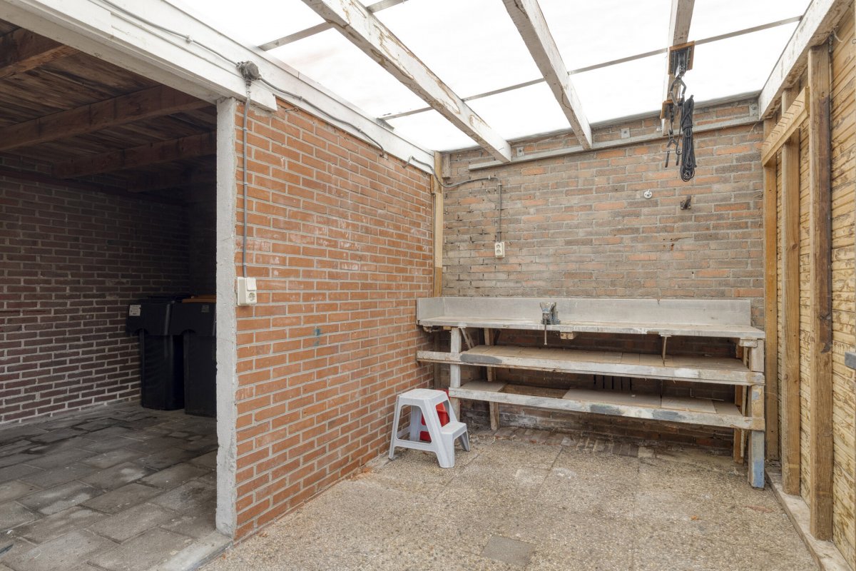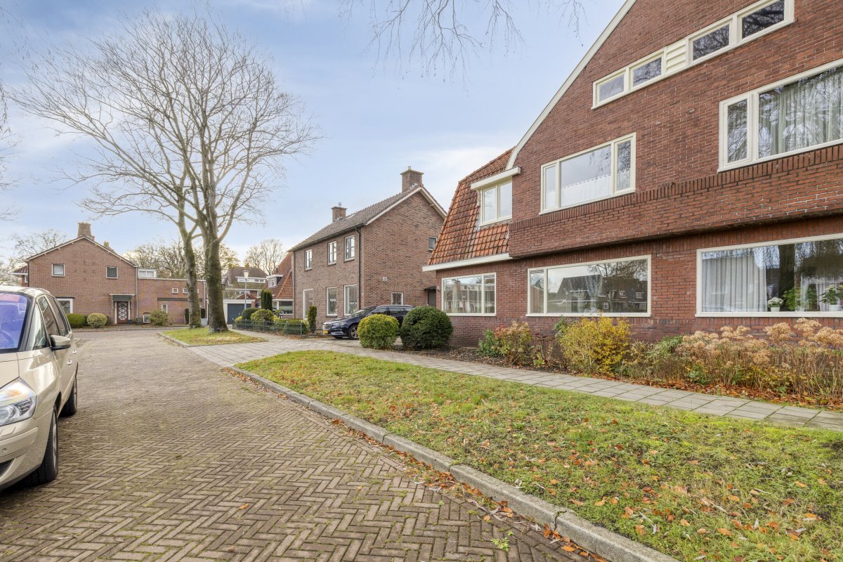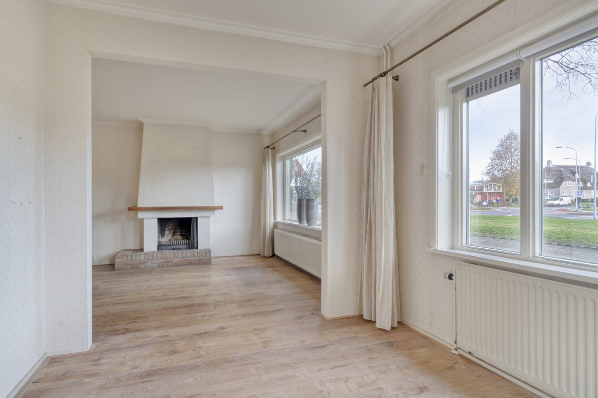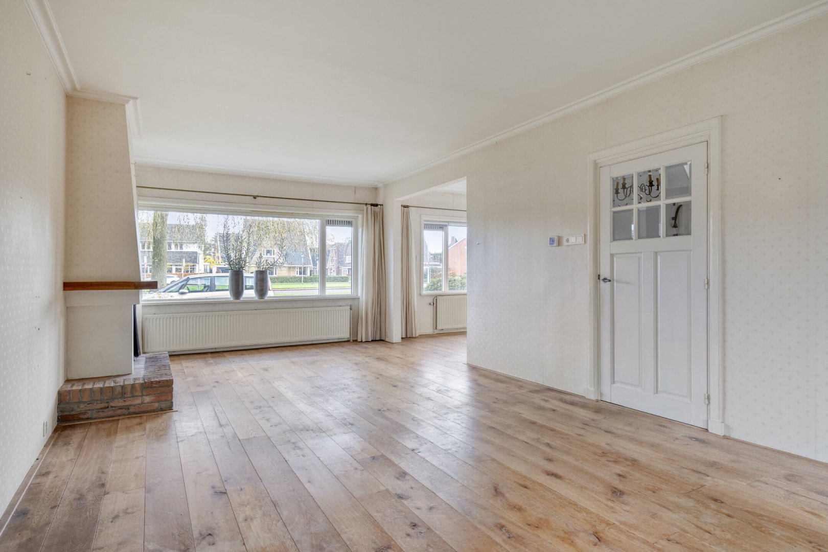 Begane grond: zijentree, ruime hal (plv.), hangend toilet met fontein, L-vormige woonkamer ca.44m² met haardpartij, eiken vloerdelen en openslaande deuren naar de achtertuin, woonkeuken ca.11m² (plv) in hoekopstelling en uitgerust met inbouwapparatuur onder andere vaatwasser, 5 pits gaskookplaat, afzuigkap en elektrische oven. Verder is de keuken voorzien van een hardstenene aanrechtblad. Via de keuken toegang tot provisiekelder (bijna stahoogte), ruime bijkeuken met witgoedaansluitingen en een keukenblok, binnendoor naar de berging en de garage.
