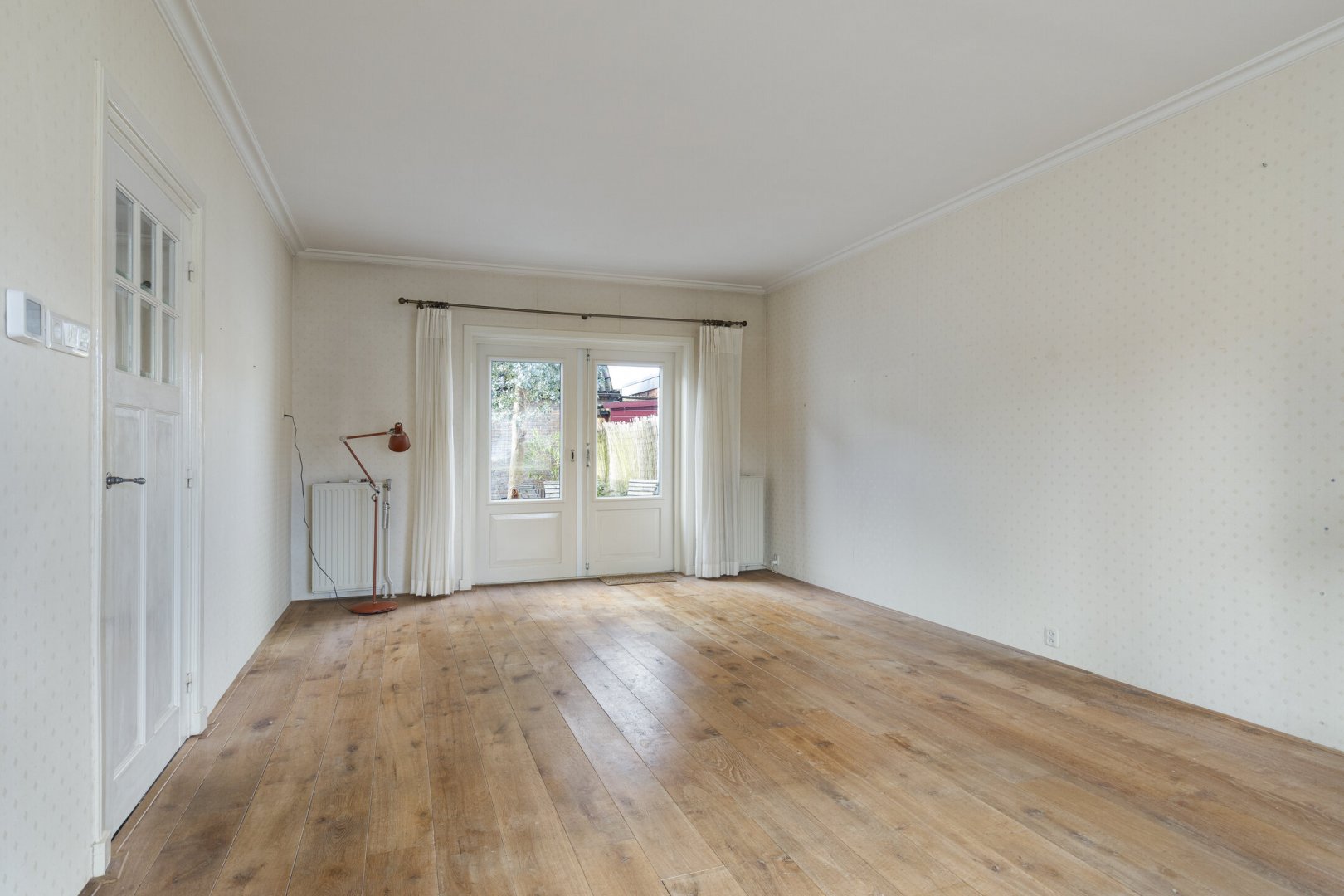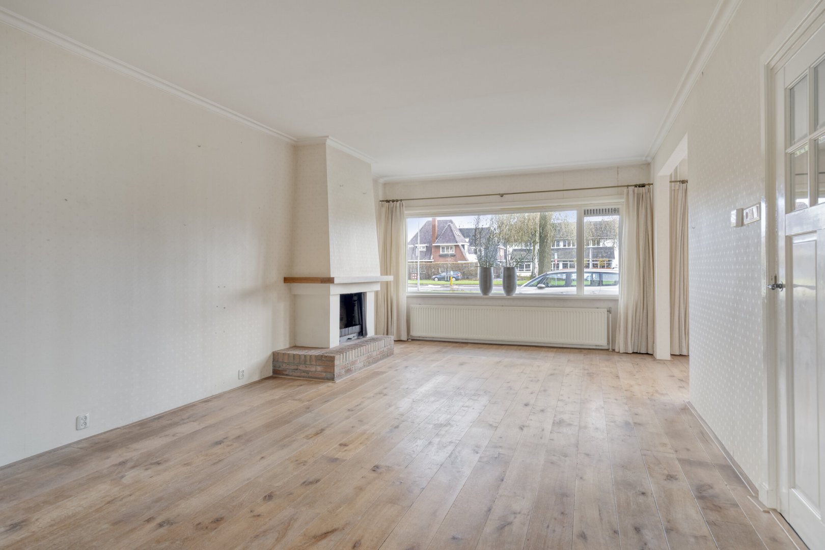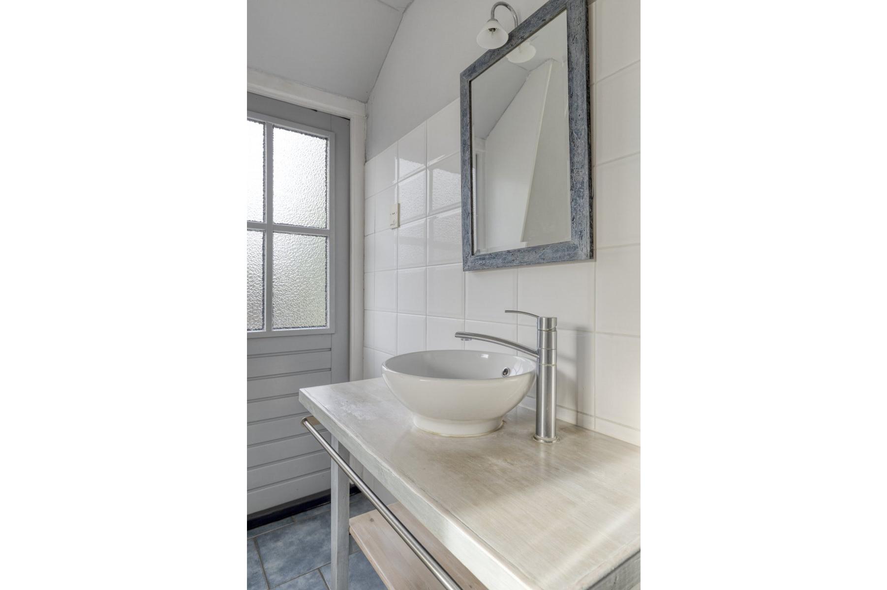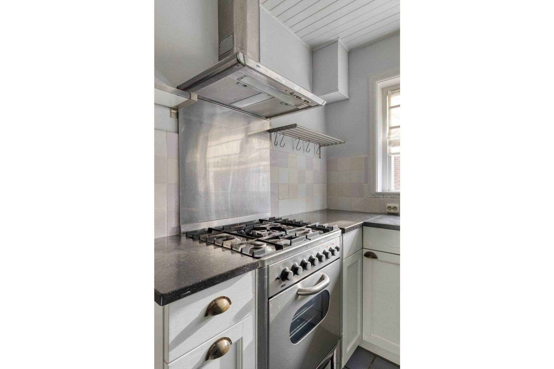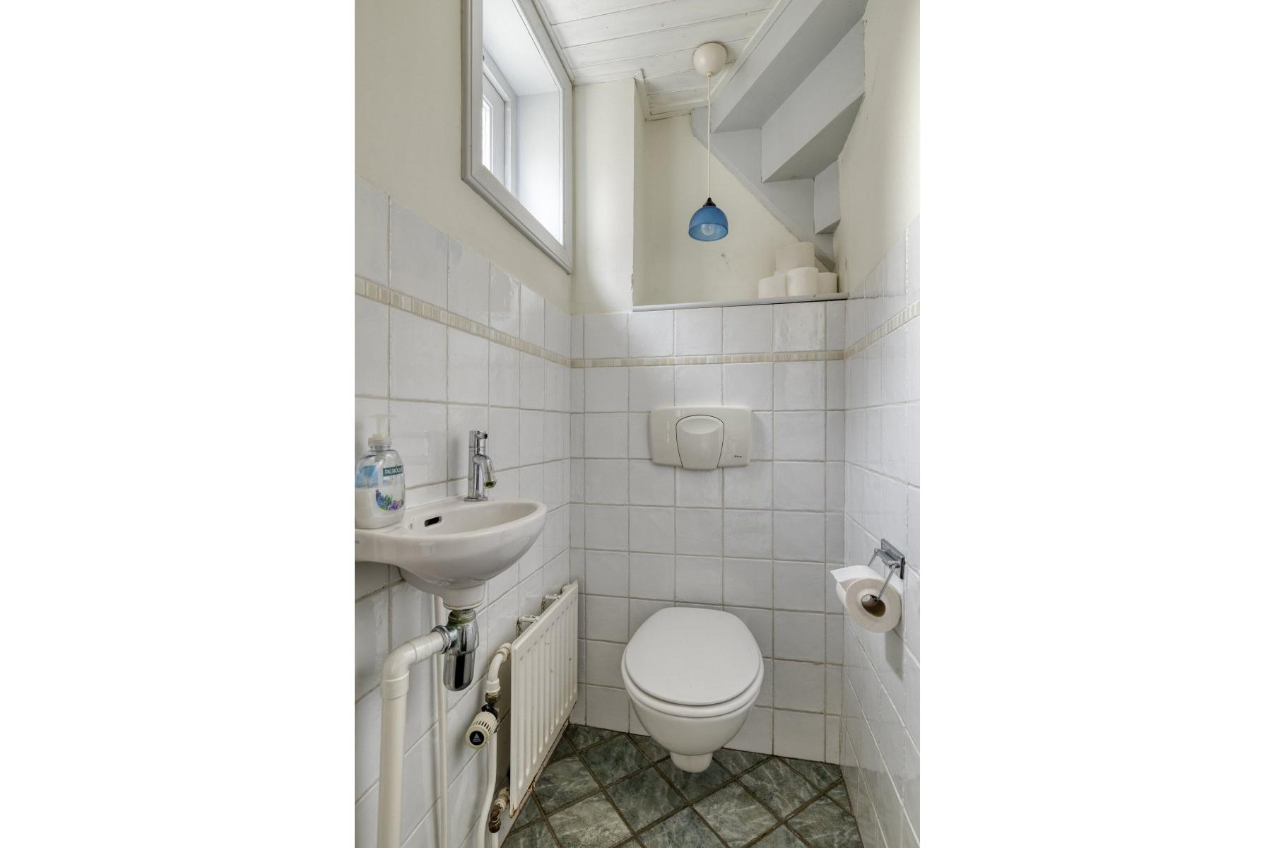Begane grond: zijentree, ruime hal (plv.), hangend toilet met fontein, L-vormige woonkamer ca.44m² met haardpartij, eiken vloerdelen en openslaande deuren naar de achtertuin, woonkeuken ca.11m² (plv) in hoekopstelling en uitgerust met inbouwapparatuur onder andere vaatwasser, 5 pits gaskookplaat, afzuigkap en elektrische oven. Verder is de keuken voorzien van een hardstenene aanrechtblad. Via de keuken toegang tot provisiekelder (bijna stahoogte), ruime bijkeuken met witgoedaansluitingen en een keukenblok, binnendoor naar de berging en de garage.