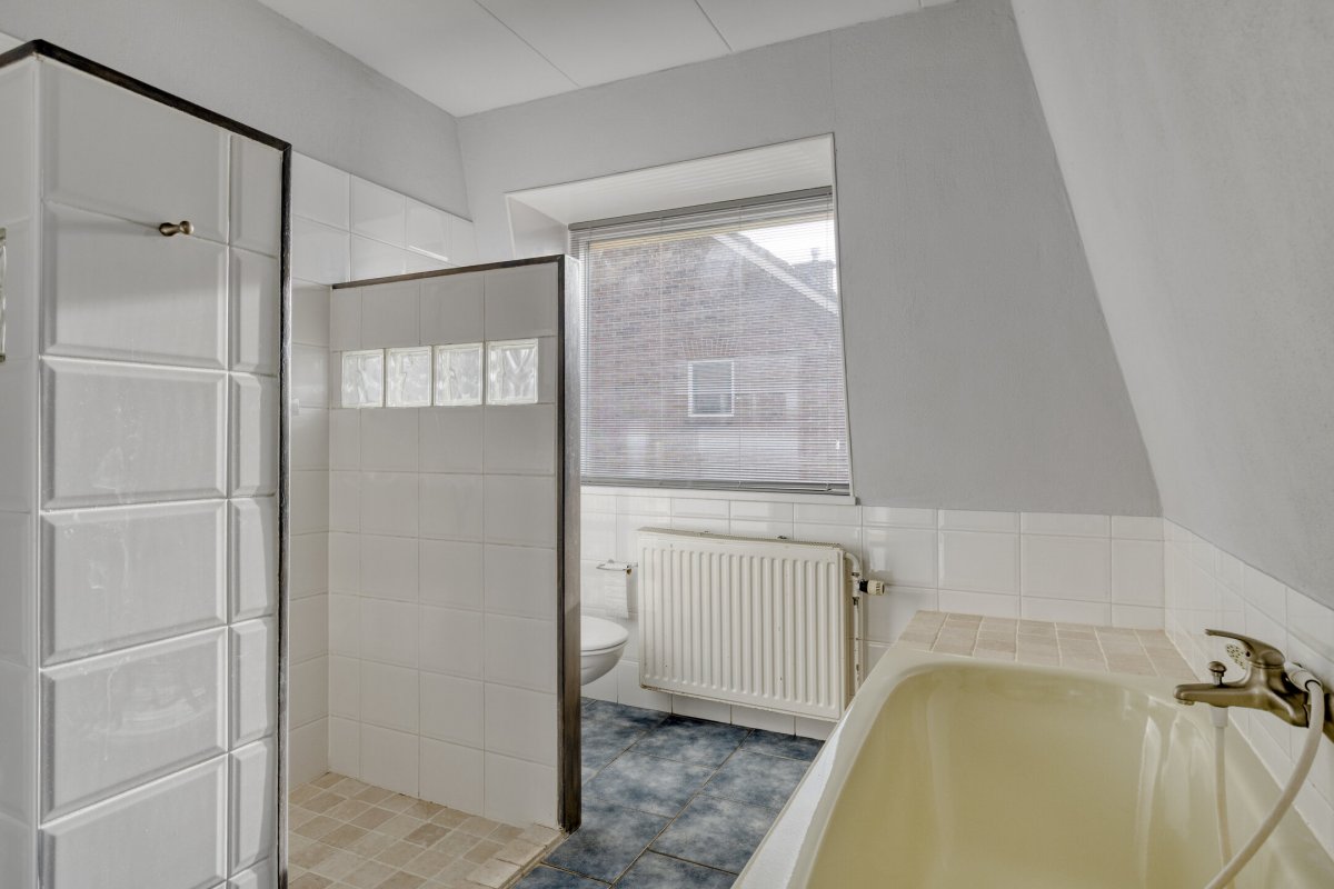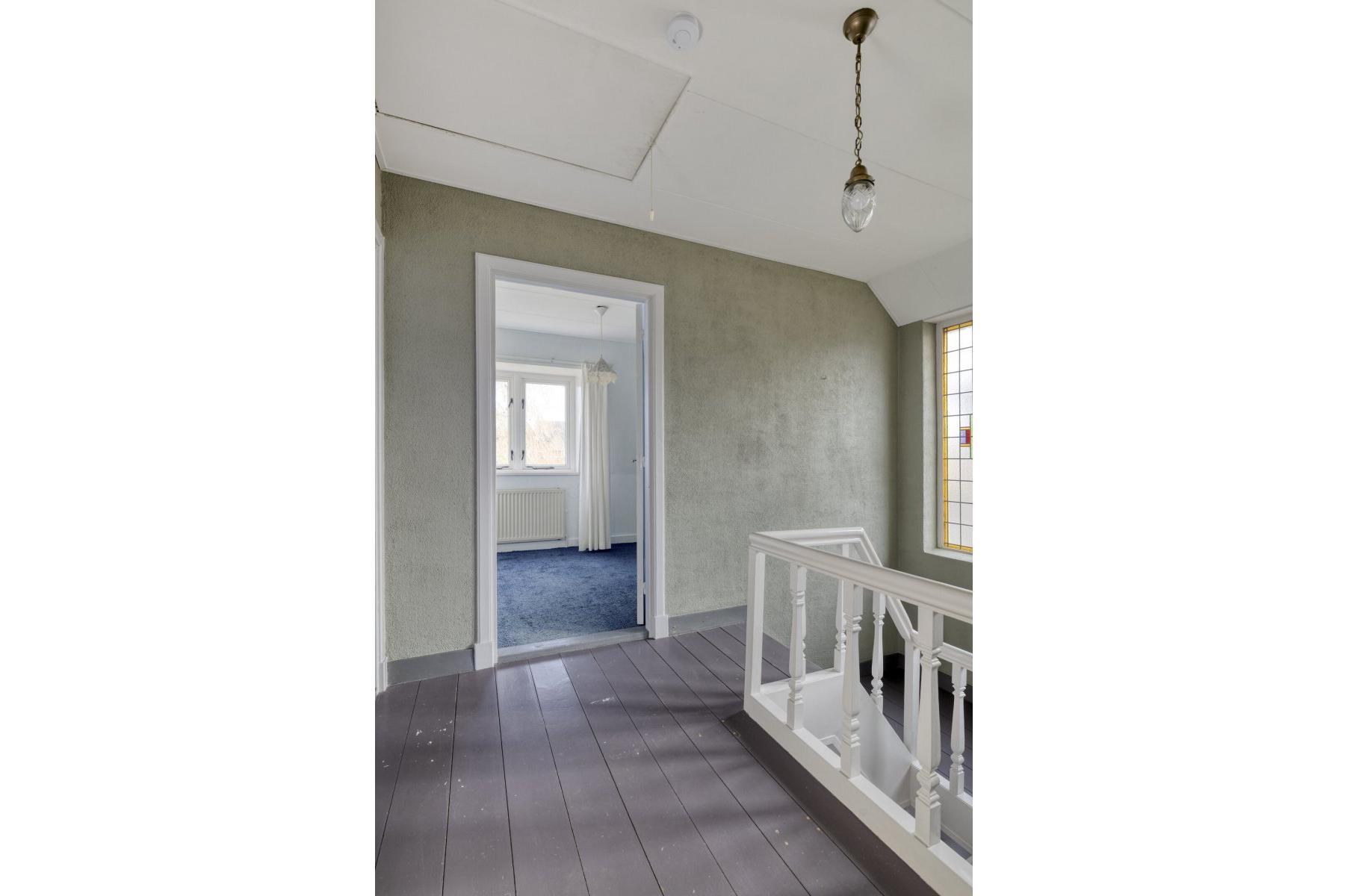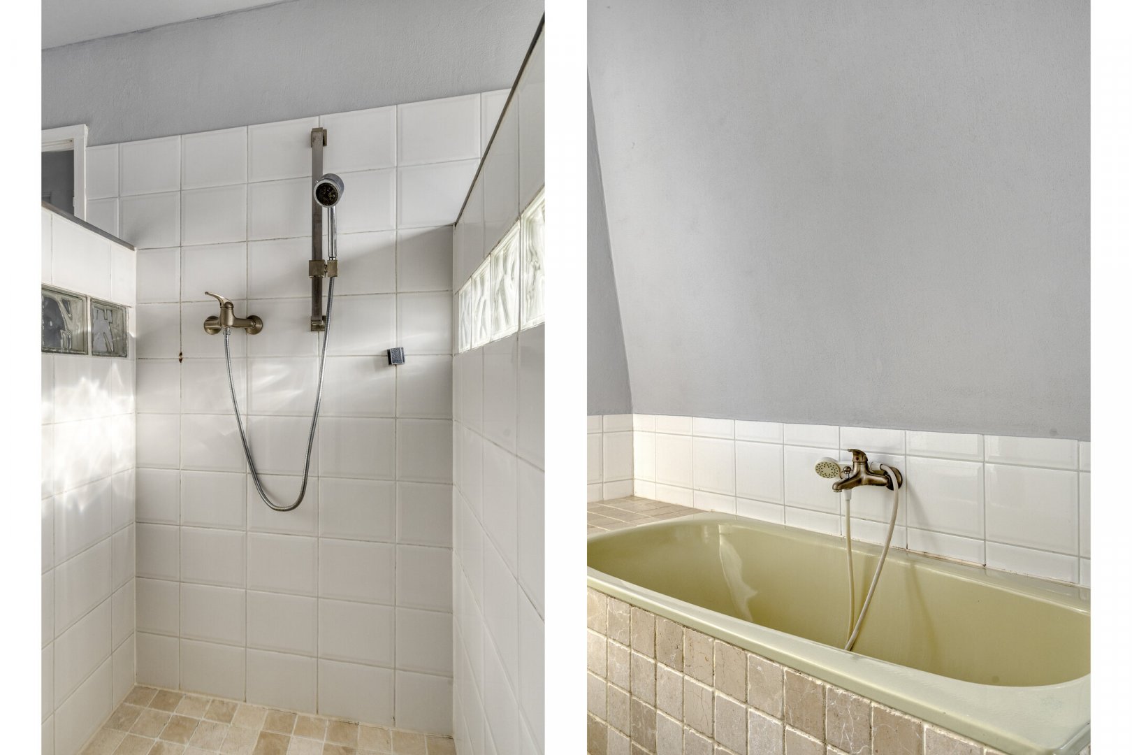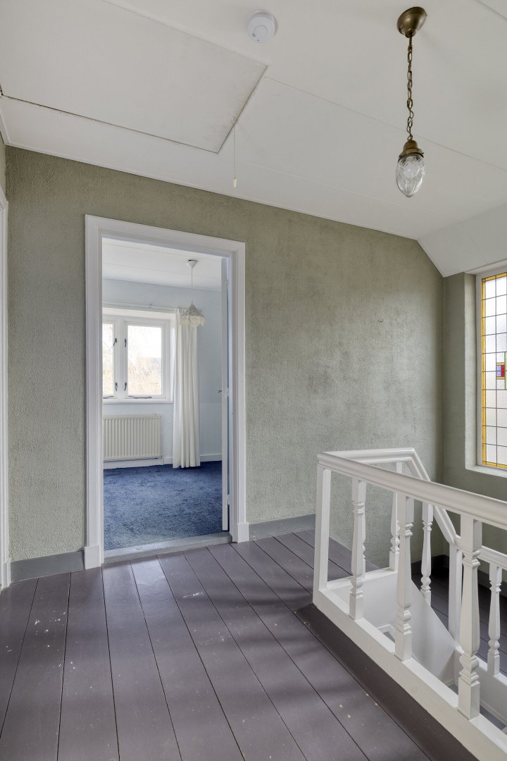 1e Verdieping: via bordestrap met prachtig glas-in-lood (met voorzetramen) naar de overloop, 3 comfortabele slaapkamers resp. ca.3.95x3.95m, ca.4.00x3.95m en ca.3.50x2.75 met vaste kasten, badkamer ca.9m² met inloopdouche, ligbad, wastafel en 2e hangend toilet.