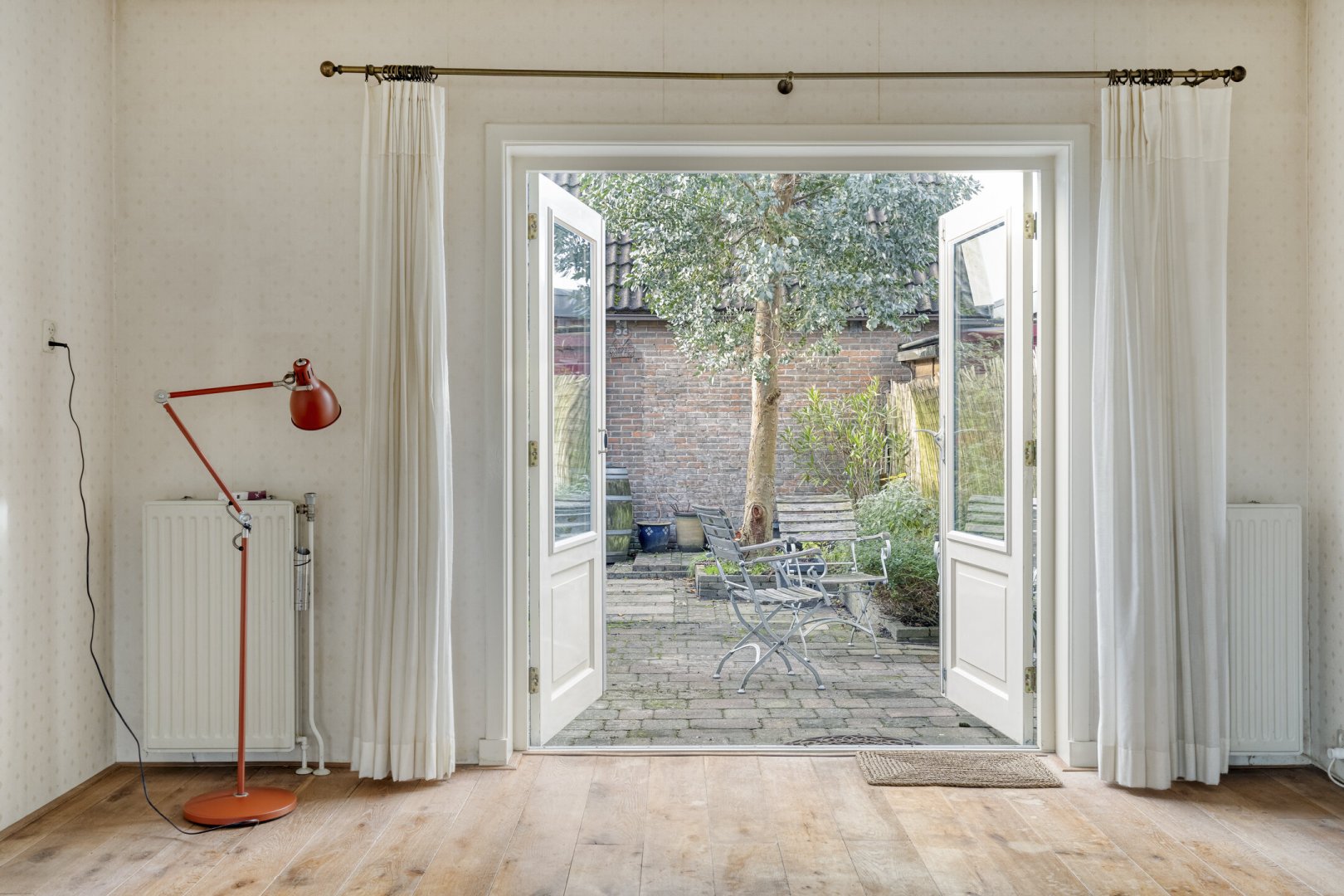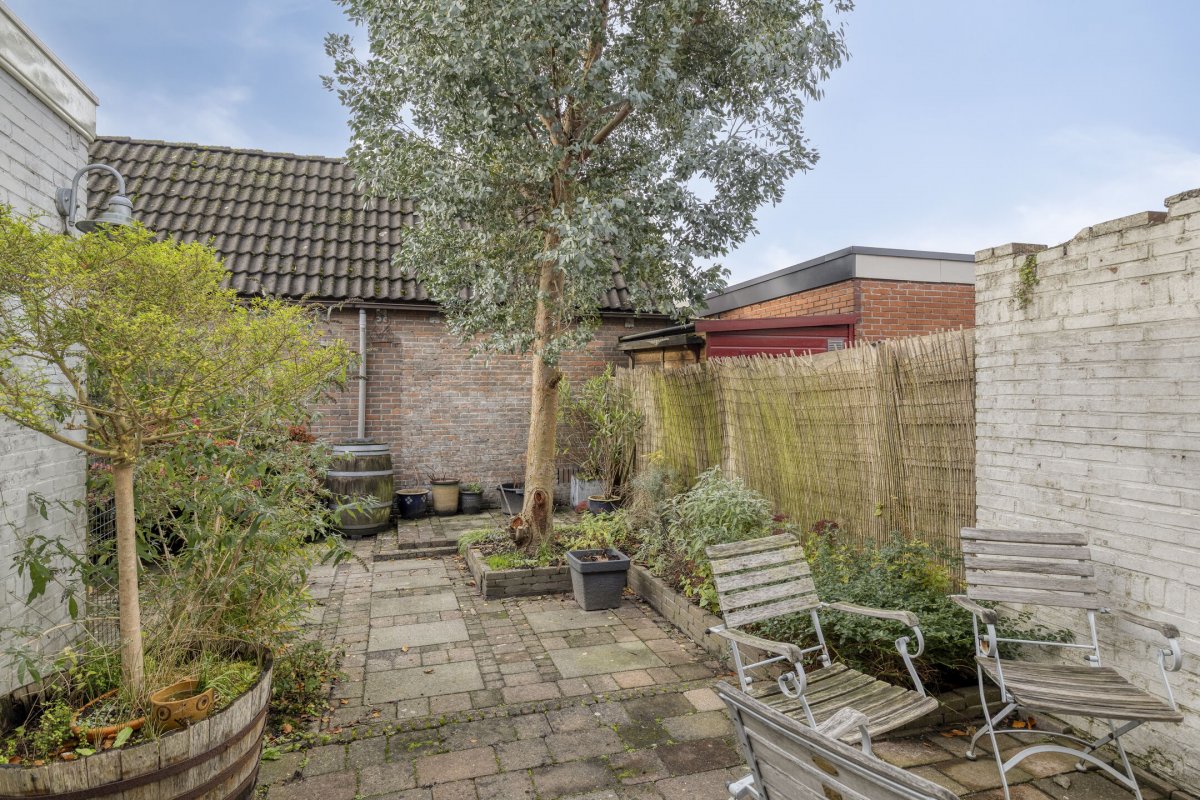 In het centrum van Veendam met vrij uitzicht gelegen helft van een goed onderhouden karakteristiek herenhuis met garage, houten berging en beschutte stadstuin op het zuidwesten.
