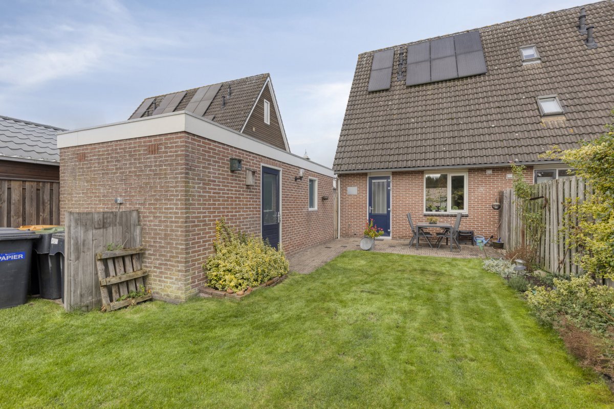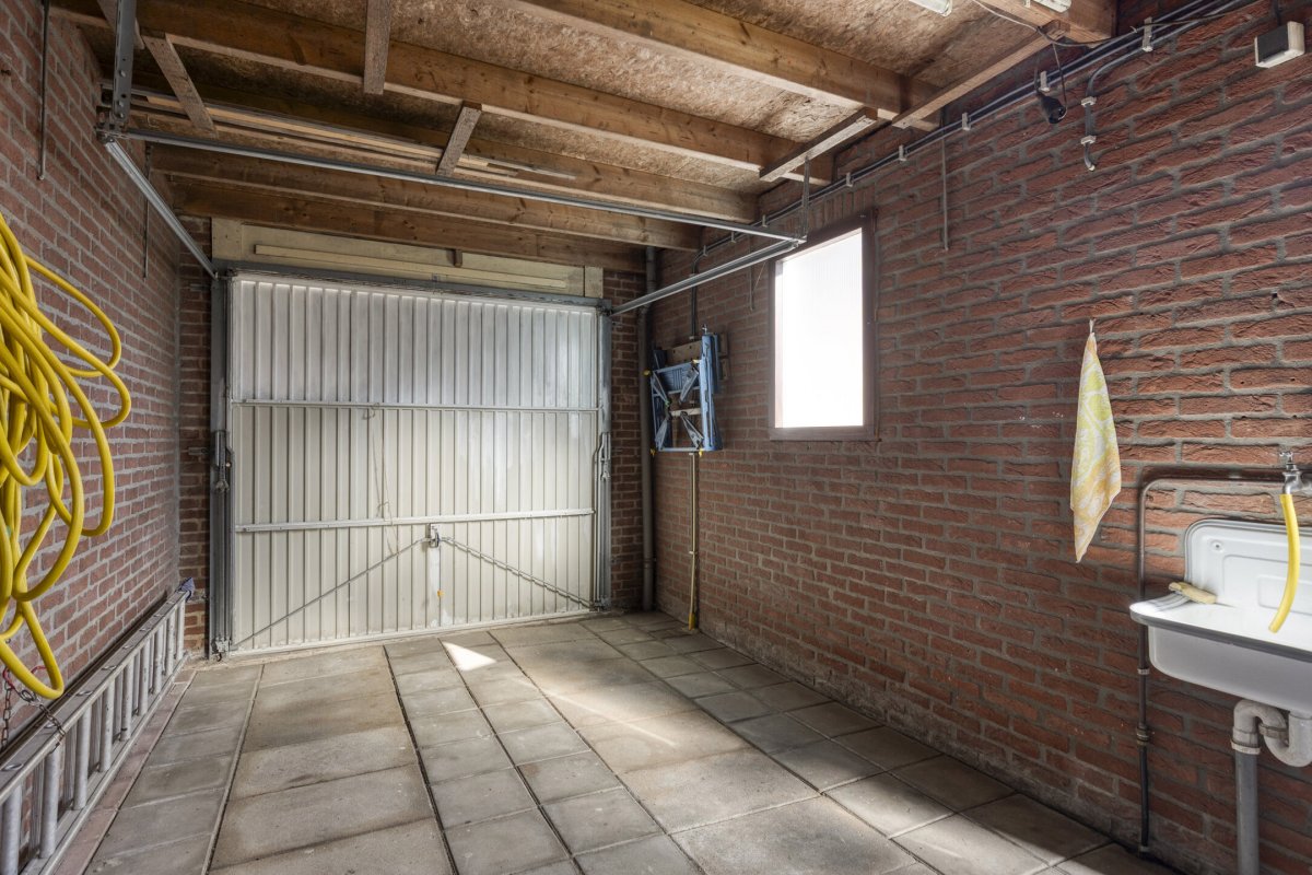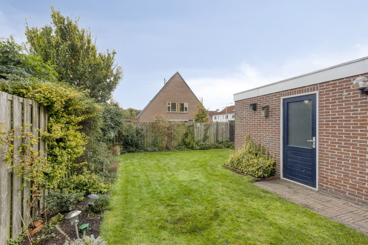 De woning beschikt over een vrijstaande stenen garage ca.6.65x2.80m voorzien van elektra en water. De verzorgd aangelegde tuin is gelegen op het zuiden en voorzien van een achterom.