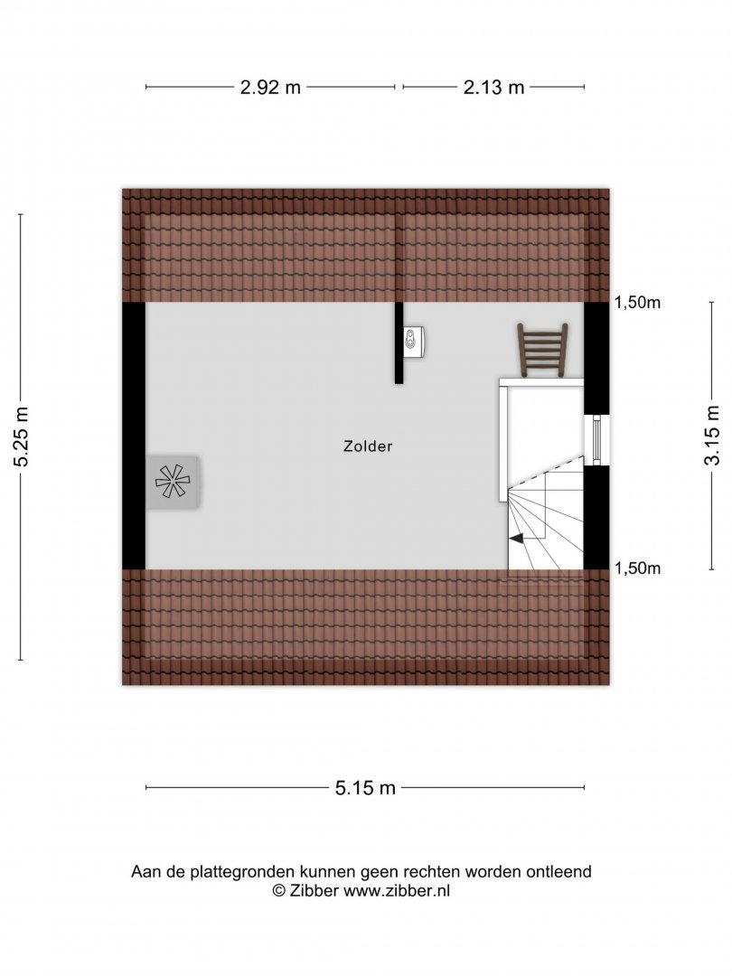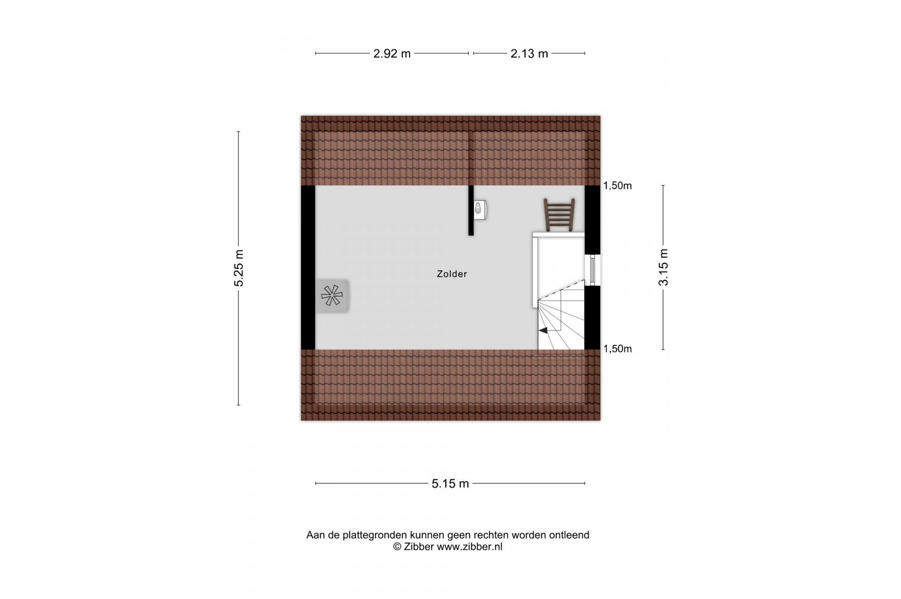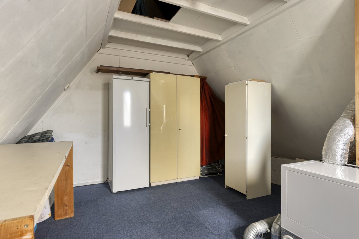 2e Verdieping: zolderruimte met c.v opstelling, mogelijkheid om een slaapkamer te realiseren, met trapje naar een vliering/berging.