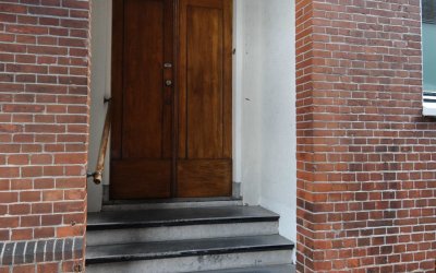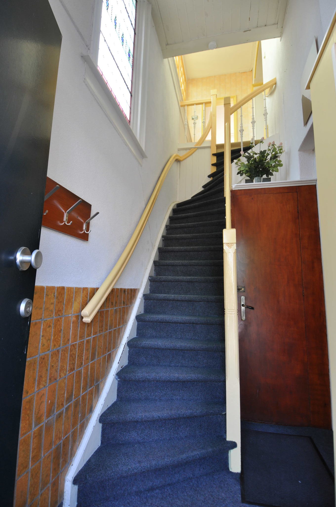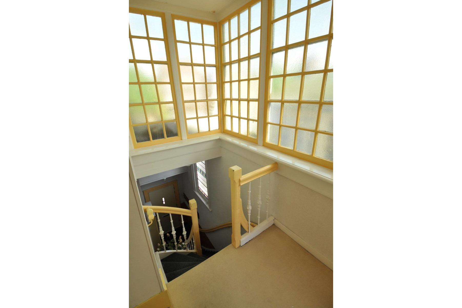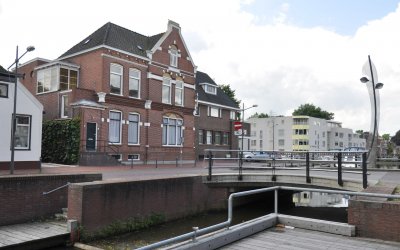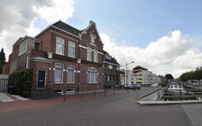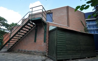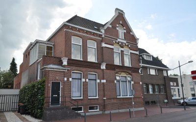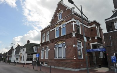 voormalige kantoorvilla met zelfstandige bovenwoning 1897. Aan de achterzijde in de jaren 1983/1984 bijeenkomstzaal met balkon en eigen toegang gerealiseerd.