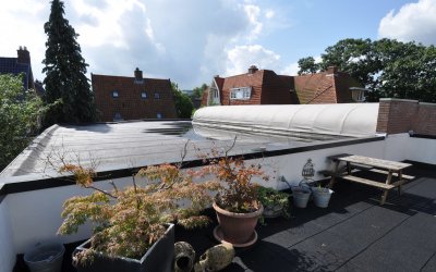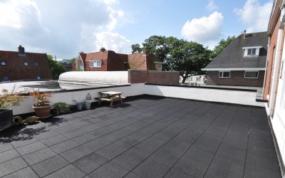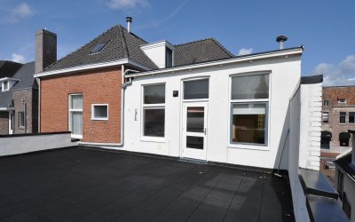 Bovenwoning nr.8: entree, hal, vestibule, woonkamer ca.47m², woonkeuken met keukenblok en toegang tot dakterras van ca. 65m², badkamer met ligbad, doucheruimte, toilet en wastafel, 2 slaapkamers via vaste trap naar 2e verd....